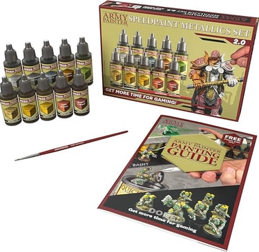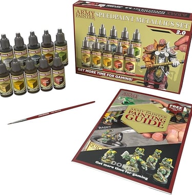 Popular Options: Citadel’s Contrast Paints, Vallejo’s Metallic Colors, and Army Painter’s Speedpaints are great options.